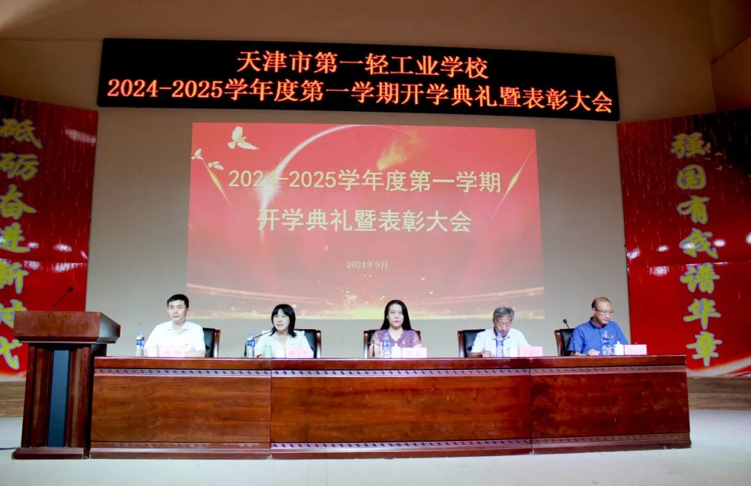 翟文杰宣读了《2024年天津市优秀教师》表彰通报及《天津市第一轻工业学校关于聘任2024级新生班级班主任的决定》;纪委书记赵文阳宣读了《关于表彰2023-2024学年度第二学期校级“优秀学生”“优秀学生干部”的决定》;副校长杨柳宣读了《关于表彰2023-2024学年度第二学期校级“优秀班主任”“先进班集体”的决定》;与会领导为受到表彰的先进集体和个人代表颁发了奖状和证书,为新任班主任颁发了聘书。